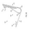 [0064] Figuras 62-66 mostram um fecho exemplar (o qual pode estar configurado para ser o mesmo que ou similar a outros fechos farpados aqui) sendo posicionado para acoplar com um folículo de uma válvula nativa;[0064] Figures 62-66 show an exemplary closure (which may be configured to be the same as or similar to other barbed closures herein) being positioned to mate with a native valve follicle;