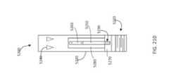 [0028] Em algumas implementações, um braço móvel do fecho inclui um recorte que o pelo menos um indicador estende através quando a abertura ou área de recebimento está fechada e o indicador está desobstruído. Em algumas implementações, o braço fixo do fecho inclui um recorte que o pelo menos um indicador estende através. Em algumas implementações, uma pá do dispositivo / sistema inclui um recorte que o pelo menos um indicador estende através quando a abertura entre a pá e o braço móvel do fecho está fechada e o indicador acopla um folículo de válvula.[0028] In some implementations, a movable arm of the lock includes a cutout that the at least one indicator extends through when the opening or receiving area is closed and the indicator is unobstructed. In some implementations, the fixed arm of the lock includes a cutout that the at least one indicator extends through. In some implementations, a device/system blade includes a cutout that the at least one indicator extends through when the opening between the blade and the movable closure arm is closed and the indicator engages a valve follicle.