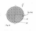 Na figura 13 é mostrado que o dispositivo de regulação de jato 4 também pode possuir duas partes integradas 5a, 5b vizinhas cujas nervuras 11 e pontos de cruzamento 10 são alinhados. Nisso torna-se claro da figura 13 que as partes integradas 5a e 5b de tal dispositivo de regulação de jato 4 também podem ter uma construção idêntica, que faz com que o dispêndio de fabricação seja reduzido mais ainda. Do mesmo modo como nas figuras 4 e 8, também na figura 13 os círculos em negrito indicam que as aberturas de passagem da placa perfurada 2 ficam alinhadas com os pontos de cruzamento 10 de pelo menos uma peça de inserção conectada em série em direção de passagem. Os círculos em negrito na figura 13 ilustram o ponto de encontro dois jatos individuais vindos do dispositivo de pulverização de jato 2 nos pontos de cruzamento 10 da peça de inserção 5a.In figure 13 it is shown that the jet adjustment device 4 can also have two neighboring