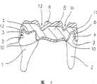 Fig. 1 shows two ready toothundesirable roots 1,2, and theirupper area 3,4 process grindings are so that admit artificial tooth.Here, this artificial tooth comprises a bridge workbasic structure 5, and in addition, bridge workbasic structure 5 has aveneer 6 according to traditional approach so that produce an apparent face of chewing.This bridge workbasic structure 5 is fixed on the toothundesirable root 1,2 by one deck dental cement incementation seam 7,8 respectively.
