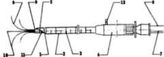 上述图中:1外套管,2外套管绝缘漆,3外套管刻度标记,4手柄,5导管,6子针扇形束,7热电偶补偿导线,8射频引入线,9电极束与导管焊接处,10热电偶,11斜口,12注射液体装置,13密封圈,14定位鞘,15适形曲度。In the above figure: 1 outer casing, 2 outer casing insulating paint, 3 outer casing scale marks, 4 handle, 5 catheter, 6 sub-pin fan bundle, 7 thermocouple compensation wire, 8 radio frequency lead-in wire, 9 electrode bundle and catheter welding , 10 thermocouples, 11 inclined ports, 12 liquid injection devices, 13 sealing rings, 14 positioning sheaths, and 15 conformal curvatures.
