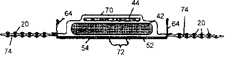 图11显示了本发明的另一实施例。在该实施例中,吸收性芯体组件42由无纺物液体可渗透的覆盖物70和液体不可渗透的背层72封装。在该实施例中,覆盖物70和背层72不延伸至吸收物品的外缘。单层无纺织物74绕弹性绳20折叠并封闭弹性绳。随后,采用任意适合的方式(例如,利用热熔粘结剂或超声波结合),将该弹性合成物固定在吸收性芯体14的侧面。Figure 11 shows another embodiment of the present invention. In this embodiment, the