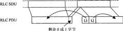 Therefore, according to the present invention, in the process of forming RLC PDU, for the segmentation of each SDU is provided with LI, be put among a plurality of PDU even if make SDU be divided into a plurality of SDU segmentations, each SDU also has only a LI.If Length Indication LI is placed on before first segmentation of SDU; In the header of each PDU, be provided with an OFFSET field and at least one LI field; First section the skew of first new SDU that the OFFSET field is represented to occur among the PDU, the LI field is represented the total length of new SDU.If Length Indication LI is placed on before last segmentation of SDU, in the header of each PDU, be provided with at least one LI field, the LI field is represented the length of last SDU segmentation.