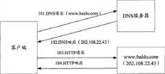Step 101; Client is imported www.baidu.com (Baidu's domain name) back carriage return in address field; At this moment, client needs the IP address of Baidu's server (first server) could send HTTP (HypertextTransfer Protocol, HTTP) request; To obtain Baidu's webpage, so will send the DNS request to dns server earlier;