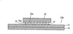 图9是具备金属层的以往的COF基板的示意的截面图。在图9的COF基板200中,在绝缘层31的一个面上设置有多个导体图案32,在另一个面上设置有金属层33。电子产品35的凸部35a被结合在多个导体图案32的端子部上。通过这种结构,电子部件35的热通过金属层33被发散。9 is a schematic cross-sectional view of a conventional COF substrate provided with a metal layer. In the