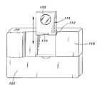 装置100包括一具有较为平坦的一前表面111及一后表面的本体110,如图6所示。可绕轴旋转的上面板115是朝向前表面111的一顶端边缘120设置。可绕轴旋转的下面板125是朝向前表面的一底端边缘130设置。上面板115是借助位于或接近顶端边缘120的一枢轴170被支撑在前表面111,如此上面板115可自由地自本体110向外转动约180度,并返回原来位置。上面板115典型地是借助将上面板115以向上的方式自本体110往外旋转而被开启,且借助将上面板115以向下的方式旋转直到与本体110平靠而被关闭。The