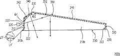值得注意的是,本发明并不限定配置于第一端面310旁的第一发光元件220的数量仅为一个。在其他实施例中,配置于第一端面旁的第一发光元件也可以有多个。此外,本发明并不限定第一表面340上必须配置有第一反射单元230与图案化光学微结构342,且不限定第二表面350上必须配置有第二反射单元240与图案化光学微结构352。在其他实施例中,第一表面与第二表面上可以不配置有反射单元,也可以不具有图案化光学微结构,而第一发光元件所发出的第一光束则在第一表面与第二表面上产生全反射,并被全反射至出光面。It should be noted that the present invention does not limit the number of the first light-emitting