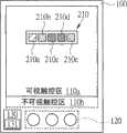 于本实施例中,可视触控区110a及不可视触控区110b可用同一触控面板构成,此触控面板的一部分是使用于可视触控区110a,而触控面板的其它部分则用于不可视触控区110b。In this embodiment, the visible touch area 110a and the invisible touch area 110b can be constituted by the same touch panel, a part of the touch panel is used for the visible touch area 110a, while other parts of the touch panel are It is used for the invisible touch area 110b.