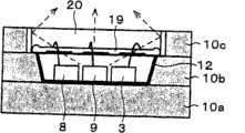 在上述的各在先技术实例中,诸如LED那样的发光元件3在流过有电流时可产生光,当其电流量增加时,发光强度也提高,但是与其相应的发热量也会增加,发光元件3所承受的热应力也将增加,所以存在有发光强度不能按照希望的程度提高,在可靠性方面也会呈现恶劣影响等问题。 In each of the above-mentioned prior art examples, the light-emitting
