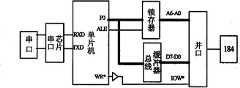 阻流器数据收发板包括串口芯片、单片机、锁存器和总线缓冲器,串口芯片输入端通过串口与阻流器可编程控制器PLC的串行端口连接,串口芯片输出端分别与单片机的发送数据线和接收数据线连接,单片机还通过总线分别连接锁存器和总线缓冲器,锁存器和总线缓冲器输出端口通过并口连接泵冲数显示器。The choke data transceiver board includes a serial port chip, a single-chip microcomputer, a latch and a bus buffer. The input end of the serial port chip is connected to the serial port of the choke programmable controller PLC through a serial port, and the output end of the serial port chip is respectively connected to the transmission port of the single-chip microcomputer. The data line is connected with the receiving data line, and the single-chip microcomputer is also respectively connected with the latch and the bus buffer through the bus, and the output ports of the latch and the bus buffer are connected with the pump stroke number display through the parallel port.