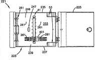 现在参看图10,壳体223包含盖子225,基部233,第一侧壁235和相对设置的第二侧壁237。第一和第二侧壁235、237从基部233向外延伸,以使得基部233和第一和第二侧壁235、237协作而限定出内部区域239。Referring now to FIG. 10 , the