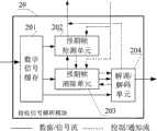 参照图4,本发明所述接收信号解析模块包括:数字信号缓存201、预期帧检测单元202、预期帧消除单元203和解调/解码单元204,其中数字信号缓存器201与外部模数转换模块30单向连接,接收并缓存经转换之后的数字中频信号;同时数字信号缓存器分别与预期帧检测单元202、预期帧消除单元203和解调/解码单元204单向连接,传送需要进行检测或消除的数字信号给预期帧检测单元和预期帧消除单元,传送可直接进行解调/解码的数字中频信号给解调/解码单元。解调/解码单元204与预期帧消除单元203之间单向连接,接收经预期帧消除之后的数字中频信号;解调/解码之后的数据发给外部MAC层帧提取模块40,用于提取完整的MAC层帧;同时,解调/解码单元204与预期帧消除单元203双向连接,该解调/解码单元204与媒质接入控制模块10中的预期帧检测与消除控制单元108单向连接,均用以辅助实现预期帧消除。预期帧检测单元202与外部媒质接入控制模块10中的预期检测与消除控制单元108双向连接,接收预期帧检测请求并能够返回检测结果和相关信息;预期帧消除单元203与预期帧检测单元202之间双向连接,用于在直接检测不成功时先进行预期帧消除再进行检测;预期帧消除单元203同时与外部媒质接入控制模块10中的预期检测与消除控制单元108单向连接,接受来自108的预期帧消除请求。Referring to Fig. 4, the received signal analysis module of the present invention includes:
