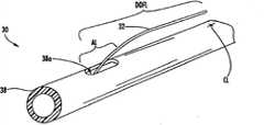 图6b描述的是图5的工具,该工具被插入到图3的光纤分配缆线之内,用于在光纤分配缆线之内的切断位置切断分配光纤。Figure 6b depicts the tool of Figure 5 inserted into the fiber optic distribution cable of Figure 3 for severing the distribution fiber at a cut location within the fiber optic distribution cable.