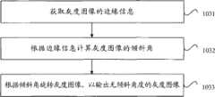 本实施例图像倾斜校正方法,通过获取灰度图像的边缘信息,并根据边缘信息计算出倾斜角,最后,根据倾斜角旋转灰度图像以获得无倾斜角度的灰度图像,可以快速有效的对需要倾斜校正处理的灰度图像进行处理,更有利于提高本实施例图像倾斜校正方法的校正效率。The image tilt correction method in this embodiment obtains the edge information of the grayscale image, calculates the tilt angle according to the edge information, and finally rotates the grayscale image according to the tilt angle to obtain a grayscale image without tilt angle, which can quickly and effectively correct Processing the grayscale images that require tilt correction processing is more conducive to improving the correction efficiency of the image tilt correction method of this embodiment.