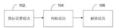 See also Fig. 6, the structure of the system for unlocking of the touch apparatus that provides for fourth embodiment of the invention.For convenience of explanation, only show the part relevant with the embodiment of the invention.The system for unlocking of described touch apparatus comprises: icon is provided withmodule 102, judgemodule 104 and separates lock module 106.The system for unlocking of described touch apparatus can be the unit that is built in software unit, hardware cell or software and hardware combining in the touch apparatus.