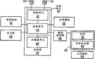 Similarly,controller 34 is selected the mode that will use which power source and determine whether to usesecond power source 40, and describes identical about Fig. 3.Difference between thebathing unit system 80 shown in above-mentionedbathing unit system 10 and Fig. 5 is that whencontroller 34 was determined to supply with power byfirst power source 38, what enable wasmain heating module 76 and water pump 82.Similarly, whencontroller 34 was determined to supply with power bysecond power source 40, what enable wasauxiliary heating module 78 and water pump 84.Though in Fig. 5,main heating module 76 andauxiliary heating module 78 are connected with the run-in index configuration, in embodiment as an alternative,heating module 76 can also be connected serially withauxiliary heating module 78, and harmless spirit of the present invention.