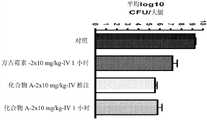 Contrast and compare with inoculation, compd A intravenous injection (10mg/kg/ dosage, 20mg/kg accumulated dose) and 1 hour venous transfusion (10mg/kg/ dosage, 20mg/kg accumulated dose) respectively bacterial load is reduced to 3.2log and 3.0log.Compare with the inoculum level infectedlatter 1 hour, reduce respectively about 2.2log to 2.0log.Effect and vancomycin are suitable.Referring to, Fig. 4.