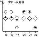 如上所述,成品的内部图案化的多层光学膜的前体制品可以是聚合物材料的浇铸料片。浇铸料片与成品膜可以具有相同的层数,并且构成层的聚合物材料可以与用于成品膜中的那些相同,但浇铸料片较厚并且其层通常都是各向同性的层。然而在一些情况下(图中未示出),浇铸过程本身可以在材料中的一种或多种中赋予一定程度的取向或双折射。图5A-N中的菱形符号表示浇铸料片中的两层聚合物层的折射率,所述聚合物层在后续拉伸步骤之后变为多层光学膜的光学重复单元中的微层。拉伸之后,层中的至少一些变为取向和双折射的层,并且形成取向(但仍未图案化)的多层光学膜。这在图5A-N中通过空心圆示出,所述空心圆可以从其由菱形符号表示的相应初始值进行竖直移位。例如,一种类型的拉伸工序可以提高给定层沿x轴的折射率,但降低其沿y轴和z轴的折射率。这种折射率偏移可以通过下述方式获得:沿x轴适当地单轴拉伸正双折射聚合物层,同时允许膜沿y轴和z轴在尺寸上松弛。在图5A-E中,拉伸工序提高第一层沿x轴和y轴的折射率,但降低其沿z轴的折射率。这种折射率偏移可以通过沿x轴和y轴适当地双轴拉伸正双折射聚合物层来获得。在图5J中,拉伸工序提高第一层沿x轴的折射率,降低其沿z轴的折射率,并且沿y轴保持大致相同的折射率。在一些情况下,这种折射率偏移可以通过下述方式获得:相比于沿y轴,沿x轴使用较高程度的拉伸,沿x轴和y轴不对称地双轴拉伸正双折射聚合物层。在其它情况下,这可以大致通过下述方式获得:沿x轴单轴拉伸,同时在y轴上约束膜(受约束的单轴拉伸)。应当注意,在图5A-N中的每一个中,处于其取向但未处理状态(空心圆)下的第一层和第二层均为双折射层。As noted above, the precursor article to the finished internally patterned multilayer optical film may be a cast web of polymeric material. The cast web can have the same number of layers as the finished film, and the polymeric materials making up the layers can be the same as those used in the finished film, but the cast web is thicker and its layers are generally isotropic. In some cases (not shown in the figures), however, the casting process itself may impart a degree of orientation or birefringence in one or more of the materials. The diamond symbols in Figures 5A-N represent the refractive indices of the two polymer layers in the cast web that after a subsequent stretching step become microlayers in the optical repeating unit of the multilayer optical film. After stretching, at least some of the layers become oriented and birefringent, and an oriented (but still unpatterned) multilayer optical film is formed. This is shown in Figures 5A-N by open circles that can be vertically displaced from their respective initial values represented by diamond symbols. For example, one type of stretching process can increase the index of refraction of a given layer along the x-axis, but decrease its index of refraction along the y- and z-axes. This index shift can be obtained by properly uniaxially stretching the positively birefringent polymer layer along the x-axis while allowing the film to relax dimensionally along the y- and z-axes. In Figures 5A-E, the stretching process increases the refractive index of the first layer along the x- and y-axes, but decreases its refractive index along the z-axis. Such a refractive index shift can be obtained by suitably biaxially stretching positively birefringent polymer layers along the x- and y-axes. In Figure 5J, the stretching process increases the refractive index of the first layer along the x-axis, decreases its refractive index along the z-axis, and maintains approximately the same refractive index along the y-axis. In some cases, this index shift can be obtained by using a higher degree of stretching along the x-axis than along the y-axis, asymmetrically biaxially stretching positive Birefringent polymer layer. In other cases, this can be achieved roughly by uniaxial stretching along the x-axis while constraining the film in the y-axis (constrained uniaxial stretching). It should be noted that in each of Figures 5A-N, both the first and second layers in their oriented but untreated state (open circles) are birefringent layers.