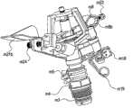 In order to increase modulability, prevent from neglecting fast and scurry, or the hard-to-use situation once in a while of card arranged slowly suddenly, handle part on the target of fetching water (m8) that the described target mandrel (m17) of can namely fetching water along the revolution mandrel rotates is except being provided with through hole, so that when some client wants change sprinkling irrigation speed, hangers weighs down (21) on through hole, or use wire, or put on electric wire, namely the principle according to the rotary inertia square changes outside the way of waving the speed cycle of shower head; Now as improving, handle part at the described target of fetching water (m8), as Figure 19 and shown in Figure 14, be provided with screw thread (m8c), and establish speed set screw (m22) and tightening nut (m23), when set screw (m22) and tightening nut (m23) are screwed into or during the length variations of back-outing, have just changed the rotary inertia square, namely to shower head to wave speed influential; Also but hangers bob and threading and set screw are also used certainly.