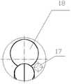 As shown in FIG. 7 and 8, the external peripheral surface ofwheel hub 26 offersplural cannelure 38, two end faces up and down atwheel hub 26 respectively offer a draw-ingroove 39, draw-ingroove 39 is opened on the cell wall of cannelure, two draw-ingrooves 39 lay respectively at the two ends ofwheel hub 26 same diameters, also offer a through hole 40 on the end face ofwheel hub 26, one of them means of spot welds ofhauling rope 13 is in the draw-ingroove 39 of upper surface,hauling rope 13 is through after through hole 40, and another means of spot welds ofhauling rope 13 is in the draw-ingroove 39 of lower surface.Drive wheel hub 26 rotations ofpoke rod 11, stir by the front and back ofpoke rod 11, in the bendingflexible pipe 3 ofhauling rope 13 onfront adapter ring 22, seesaws and make bending joint do upper and lower curvature movement.