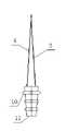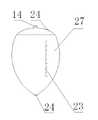 本发明的三型-救生袋包括A、B、C三袋,三型-救生袋A袋13为胸腔闭式引流袋,袋体上端有两个入口导管14、一个给药导管15及一个排气导管16,两个入口导管14通过一Y型三通接头分别连接调压导管17和活瓣导管18,调压导管17内设有浮标19,浮标19呈橄榄型,长4-5厘米,橄榄型的腹段膨大呈类圆形,最大直径为4-6毫米。两个入口导管上分别安有调压阀20,调整压力和流量;袋体下端安有肝素帽24和出口导管25;袋体中央设置一圆锥体21,袋体的正中标注有容量刻度表23,容量刻度表23为双标式,可同时标记圆锥体21和袋体的容量,容量刻度表23左侧标示袋体容量,总容量为800-1200毫升,容量刻度表23右侧标示圆锥体21容量,容量为90-120毫升,安全范围为30-90毫升,调控流量为5-100毫升/min,可控压力范围3-30厘米水柱,可通过调压管内浮标19显示其动态变化,圆锥体21上端有一分流栅22。The three-type-survival bag of the present invention includes A, B, and C three bags, and the three-type-survival bag A bag 13 is a chest cavity closed drainage bag, and the upper end of the bag body has two