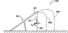 图5C是根据此公开的又一个实施方式配置的航空器回收系统540的部分示意图。该系统540包括被设置为拦截飞行中的无人航空器的细长弹性杆或航空器俘获构件542,其具有第一部分544和一个或多个第二部分546(以虚线546a和546b显示两个)。应当理解,该系统540可以只包括单一的第二部分546,或可以包括延伸自该第一部分542的超过两个第二部分546。该第二部分546的材料特性和特征可以大致类似于如上所述的该第二部分112/412。该系统540和如上所述的系统不同,因为该系统540的第二部分546a和546b不具有初始的大致线性和大致垂直布置的细长杆或航空器回收构件,它们初始为弯曲或非线性。此外,第二部分546a和546b各自具有连接该航空器俘获构件542的第一部分544的第一端,以及连接该局部表面(例如,地面)或另一适合结构的第二端。在若干实施方式中,该个别的第二部分546的第二端可以被设置为在各自的线中张力超过阈值时脱离或变为分离。在其它实施方式中,该个别的第二部分546的第二端可以保持自由,而不连接该局部表面或另一结构。在俘获和回收操作后,该第二部分546可以到达最终状态或布置(如线547所示),并且该航空器200可以从该线回收。FIG. 5C is a partial schematic diagram of an