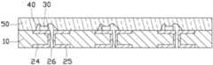 Then, onsubstrate 10, be formed with some circuit structures 20.Thesecircuit structures 20 evenly are formed on the saidsubstrate 10 at interval.Eachcircuit structure 20 comprises afirst metal layer 21, onesecond metal level 22 and is communicated with thelinkage section 23 of thisfirst metal layer 21 and second metal level 22.The said thefirst metal layer 21 andsecond metal level 22 cover on the end face and bottom surface that is arranged atsubstrate 10 respectively, and the two is parallel to each other.The end face of said thefirst metal layer 21 flushes with the end face ofsubstrate 10, and the bottom surface ofsecond metal level 22 flushes with the bottom surface of substrate 10.Saidlinkage section 23 is placed through in thesubstrate 10 and vertical thisfirst metal layer 21 andsecond metal levels 22 of connecting, the font that makes that the cross section of eachcircuit structure 20 is " worker ".Saidcircuit structure 20 can form through insert moulding (Insert Molding) mode, also can be through onsubstrate 10, forming perforation in advance, and the mode through plating, vapor deposition or sputter forms again.The material of saidcircuit structure 20 can be selected from the preferable metal materials of conductive capability such as aluminium, copper, silver.