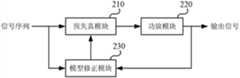 信号序列经过预失真模型的取反处理后,再经过功放模块的放大,得到理论上无失真的放大输出信号。模型修正模块230用于从功放模块220的输出端采集输出的信号,而后经过比对输入的信号序列来重新修正预失真模块210中的预失真模型。After the signal sequence is processed by the inversion of the pre-distortion model, and then amplified by the power amplifier module, a theoretically distortion-free amplified output signal is obtained. The