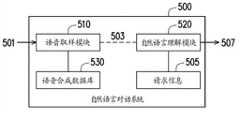 Fig. 5 A is the calcspar of the natural language dialogue system that illustrates according to one embodiment of the invention.Please refer to Fig. 5 A, naturallanguage dialogue system 500 comprisesphonetic sampling module 510, naturallanguage understanding module 520 and speech database for speech synthesis 530.In one embodiment,phonetic sampling module 510 is in order to receive phonetic entry 501 (for example from user voice), subsequently it is resolved and produceanalysis result 503, and naturallanguage understanding module 520 can be resolved and obtains wherein solicitedmessage 505analysis result 503AndAfter finding the answer that meets solicitedmessage 505,, export again the voice of inquiring about and give the user as the voice answer-back 507 corresponding tophonetic entry 501 by speech database for speech synthesis 130 being carried out corresponding speech polling according to this answer.Wherein, when if the voice answer-back 505 that naturallanguage understanding module 520 has been done does not meet solicitedmessage 505 in the phonetic entry 501 (for example the user inputs another phonetic entry and indicates this thing), naturallanguage understanding module 520 can be revised answer originally, and exports another voice answer-back 507 and give the user.