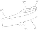 如图10所示,上述指示限位块32上端设有限位台321,用于限制上述限位块32的转动角度,上述指示限位块32含有销孔322,使上述指示限位块32能安装于上述限位滑块33上,上述指示限位块32下端设有挂钩323,用于与上述限位滑块33配合,如图10所示的棘爪324与如图7所示的上述棘齿齿轮142的齿相啮合,使上述传动轮14单向旋转。 As shown in Figure 10, the upper end of the above-mentioned indicating