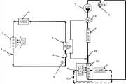 Describedheat exchanger 6 is plate type heat exchanger, described heat exchanger comprises two kinds of heat transferring medium runners, described refrigerant-cycle systems comprises electric air-conditioning compressor 1 and the condenser 2 that is connected with a kind of heat transferring medium runner ofheat exchanger 6 by first circulation line, is provided withpressure switch 3,electromagnetic switch 4 and expansion valve 5 from describedcondenser 6 successively to the pipeline section between theheat exchanger 6; The described condenser 2 other fans that also are provided with.