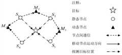 如图4所示,静态节点S1向移动节点M1、M2发送目标位置信息。节点S2向M2、M3发送信息,节点S3向M3发送信息,节点S4向M1发送信息。As shown in Figure 4, the static node S1 sends target location information to the mobile nodes M1 and M2 . Node S2 sends information to M2 and M3 , node S3 sends information to M3 , and node S4 sends information to M1 .