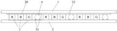 三个OLED子像素3和一个EPD子像素4可以呈方形排列(如图1所示),也可以呈直线型排列(如图2所示)。当然,在其他实施方式中三个OLED子像素和一个EPD子像素也可以根据实际情况,以菱形或其他方式进行排列。本发明对于OLED子像素和EPD子像素的形状大小不做具体限定,OLED子像素和EPD子像素可以为正方形、长方形、正三角形或其他形状,OLED子像素的大小与EPD子像素的大小可以相同,也可以不同。OLED子像素和EPD子像素在像素单元中的排列需要考虑子像素的数量、大小等因素,通常可呈方形排列或直线型排列,也可以呈三角形、六边形、菱形等其他方式排列。Three