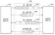 接着,在运算处理单元302使用存储在第一缓冲器304中的运算处理信息1完成第一应用运算的处理之前,程序控制单元301可将第二应用运算所需的运算处理信息2暂时存储在第一缓冲器304中。Next, before the