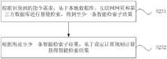 S231, according to the instruction demand recognizing, carries out intelligent retrieval based on local data base, internet web page and third party database, obtains the sub-result of at least one intelligent retrieval.