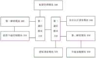 The first decryption module 300 is mainly configured to decrypt, by using the second key, the fiscal device identifier in the fiscal device authentication request received by thefirst communication module 320.