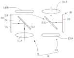 同样,请一并参阅图14,当选择第二拍摄模式时,所述处理单元70可控制所述第一反射元件511及第二反射元件531均运动至第一角度方向,例如所述第一反射元件511及第二反射元件531均与水平轴(X轴)之间呈一定角度(例如45度)。如此,所述第二镜头组13中的第二镜头131A及第二镜头131B获取的影像光束可分别通过所述第一反射元件511及第二反射元件531反射或投射至第一影像感测元件31及第二影像感测元件33。而由于所述第一镜头组11中的第一镜头111A及第一镜头111B获取的影像光束无法形成相应的光学路径,因而无法反射或投射至相应的第一影像感测元件31及第二影像感测元件33。Similarly, please also refer to FIG. 14 , when the second shooting mode is selected, the