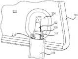 Referring to FIG. 3, a strap (e.g., such as third strap 216) may be coupled toinner surface 222 ofBOP 110 viashackle 320 andannulus 322. Thestrip 216 may include an annulus (also referred to herein as a first annulus) 317. A band (also referred to herein as a second band) 322 may be attached to theinner surface 222. Thecircumferential band 322 may be adhered to theinner surface 222. For example,circumferential band 322 may be sewn tomaterial 324, whereinmaterial 324 is adhered tointerior surface 222.Hook ring 320 may extend throughloop 317 and throughloop 322, thus couplingstrap 216 tointerior surface 222. Although illustrated as being coupled via hook andloop 320, it is contemplated herein thatstrap 216 may be attached tointerior surface 222 via any suitable fastener, device, or method.