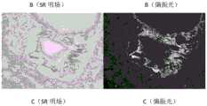天狼星红和其衬染液都是强酸性染料,易与胶原分子中的碱性基团结合,吸附牢靠。偏振光镜下检查,胶原纤维有正的单轴双折射光的属性,与天狼星红染色液结合后,可增强双折射,提高分辨率,从而大致区分出不同纤维类型(I型呈黄色、橙红色,III型呈黄绿色)。从而能够避免明场图片易出现假阳性染色的分辨情况,以及因为增强折射而减少了假阴性的染色问题。Sirius red and its lining dye are strong acid dyes, which are easy to combine with basic groups in collagen molecules and have firm adsorption. Examined under a polarized light microscope, collagen fibers have the property of positive uniaxial birefringence light. When combined with Sirius red staining solution, birefringence can be enhanced and resolution can be improved, thereby roughly distinguishing different fiber types (type I is yellow, orange, etc.). red, type III is yellow-green). In this way, it is possible to avoid the discrimination of false-positive staining in brightfield images, and reduce the problem of false-negative staining due to enhanced refraction.