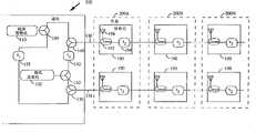 图10是一例含有多个并行阵列的双元分布式天线系统的配置方框图;Fig. 10 is a configuration block diagram of a dual-element distributed antenna system containing multiple parallel arrays;