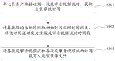 when a section of court trial audio and video stream is received, acquiring current system time, calculating the time difference between the system time and initial time, wherein the initial time is the system time when the first section of court trial audio and video stream in the current court trial video file is received, and determining the time difference as the time stamp of the section of court trial audio and video stream;