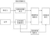 证件信息采集单元用于在系统注册时录入证件信息作为注册信息;证件信息采集单元还用于在信息采集时读取身份证件的证件信息及芯片内图像,并对身份证件进行扫描以获取证件表面印刷照片的扫描图像;The certificate information collection unit is used to enter the certificate information as registration information during system registration; the certificate information collection unit is also used to read the certificate information and the image in the chip of the ID card during information collection, and scan the ID card to obtain the surface of the certificate Scanned images of printed photographs;