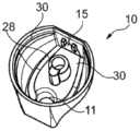 Embodiment 3 relates to a dispenser according toembodiment 2, wherein therecess 26 cooperates at least partially in a form-fitting manner with thecartridge 1 orcartridge receptacle 10.