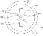 The 2nd engaging member 300a is a member capable of engaging with the 1st engaging member 200a by rotation with respect to the 1st engaging member 200a, and has a centralconvex portion 310 and anengagement receiving portion 320. The centralconvex portion 310 and theengagement receiving portion 320 of the 2nd engaging member 300a are arranged at intervals corresponding to the centralconcave portion 230 and theengagement protrusion 220 of the 1st engaging member 200 a. Thecenter projection 310 is provided on the mountingsurface 21 of theattachment member 20 and projects upward. Thecentral protrusion 310 abuts against thecentral recess 230 of the 1st joining member 200a and is partially fitted into thecentral recess 230, thereby supporting the 1st joining member 200a, and restricting linear movement and downward movement of the 1st joining member 200a in the parallel direction, whereby the 1st joining member 200a can rotate in the parallel direction. In other words, the centralconvex portion 310 and the centralconcave portion 230 constitute a rotation axis when the 1st engaging member 200a rotates with respect to the 2nd engaging member 300 a. Thecenter projection 310 defines a throughhole 311 penetrating in the vertical direction. The throughhole 311 communicates with thehollow portion 13 from theopening 231 in a state where the centerconvex portion 310 abuts against the centerconcave portion 230.