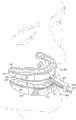 Fig. 8E illustrates an isometric view of an examplearcuate frame 700. As shown in fig. 8E, thearched frame 700 may include aforward structure 710, anengagement surface 702 that is not continuous over the entire length of thearched frame 700, and aflange 706, theflange 706 including alateral flange portion 708, aflange groove 712, amedial flange portion 710, and amedial flange groove 714. As shown in fig. 8E, theflange 706 may include aninboard flange groove 714 located approximately at the midline of the arcuate frame. In such embodiments, themedial flange groove 714 may allow for improved conformity with the shape of the user's mouth. In some embodiments, the distal end ofarcuate frame 700 may extend approximately to the first molars of the user when the frame is inserted into the user's mouth. In alternative embodiments,arcuate frame 700 may extend to the user's second molars or to the user's third molars.