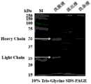 The concentration of the purified antibody was measured using a Bradford assay kit for the concentration of Berlin, and was finally determined to be 2.775 mg/ml. SDS-PAGE was used to detect the fractions eluted, the fractions eluted and the fractions eluted to observe the purification effect, as shown in FIG. 2, and as shown by the arrows in the figure, significant heavy and light chain bands appeared after the reduction of the sample, finally indicating that the purity was above 95%.