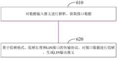 step S620, framing the interface data based on the framing format, the framing length, and the transmission protocol of the LIN interface, and generating an LIN output packet.