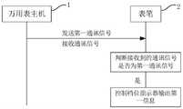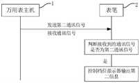 In the measuring process, when a measuring gear is switched, themultimeter host 1 sends a first communication signal or a second communication signal to themeter pen 2, and if the measuring gear is not switched, a third analog voltage signal is sent all the time to indicate a measuring result.