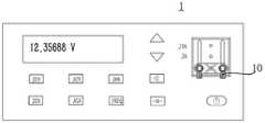 In the measuring process, themultimeter host 1 converts the voltage value of the received external measuring signal according to a set proportion, ensures that the voltage value range conforms to the set voltage value range, and obtains the converted signal. The signal indicates what the measurement is.Multimeter host 1 sends the converted signal to controlunit 23. Thecontrol unit 23 reads and processes the converted signal, and controls themeasurement indicator 22 to output measurement result information. Specifically, the measurement result information is a measurement value or information related to the measurement value. The information related to the measurement value may be a percentage of the span, may be a percentage of the voltage span or a percentage of the current span. The measurement result information may be in the form of a light, and specifically, the measurement value or a position corresponding to the information related to the measurement value emits light.