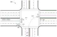 Fig. 6 depicts an exemplary scenario that facilitates understanding of the present subject matter. As shown, AV10 has an expectedpath 610 corresponding to an unprotected left turn to lane 621 atintersection 600. Also shown in fig. 6 are a plurality of vehicles (or "obstacles"), which may be relevant to deciding whether and/or how AV10 completes its turn and its target and acceleration and speed during that turn-for example, AV10 may observe anoncoming vehicle 601 whose trajectory indicates that it is expected to crossintersection 600 and continue inlane 622; and anothervehicle 602 whose trajectory indicates that it is expecting a right turn into thesame lane 621 as the target ofAV 10. The regions of interest in this scene are the regions (or lanes) that the AV10 will likely traverse in thesubsequent path 610. In this regard, fig. 7 depicts a simplified version of fig. 6, which isolates certain features of the illustrated scene, namely, a region ofinterest 702 corresponding to its expectedpath 703 as the AV10 turns left, and thepaths 611 and 612 of thevehicles 601 and 602, respectively. In certain embodiments, the region ofinterest 702 of fig. 7 is determined according to step 502 of the process 500 (e.g., by theguidance system 78 of fig. 3 in conjunction with themodule 430 of fig. 4) as discussed above in conjunction with fig. 2. In certain embodiments, the region ofinterest 702 of fig. 7 is determined based on an expected path of travel of thevehicle 10 making a left turn, including the width of AV10 along the path and a buffer region around the width ofAV 10. As described above, although the region ofinterest 702 is shown as a polygon in fig. 7, the present embodiment is not limited to such a representation.
